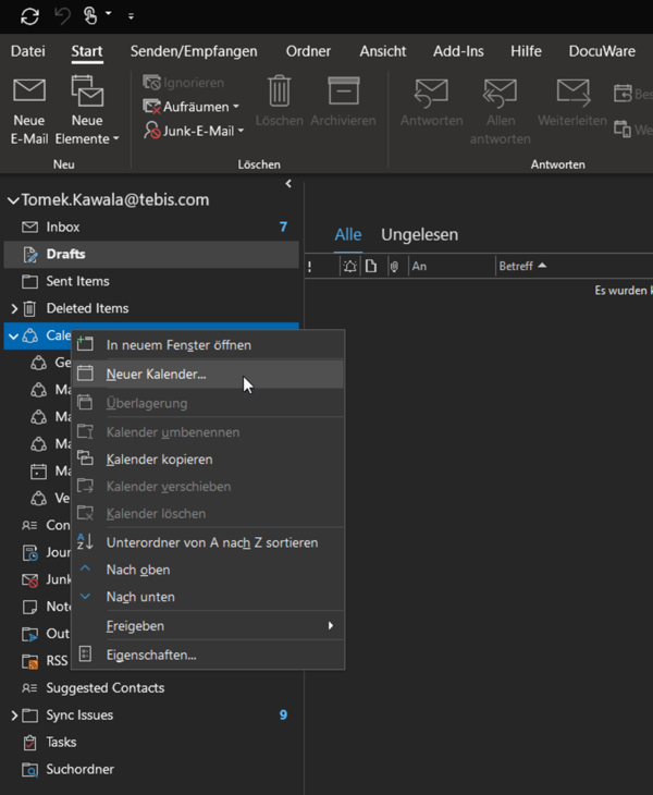 2. Öffnen der Baumstruktur und Erstellen eines neuen Kalenders