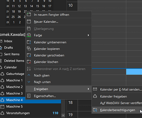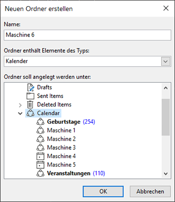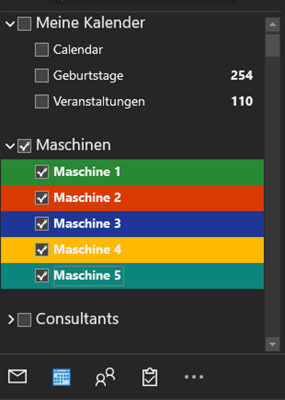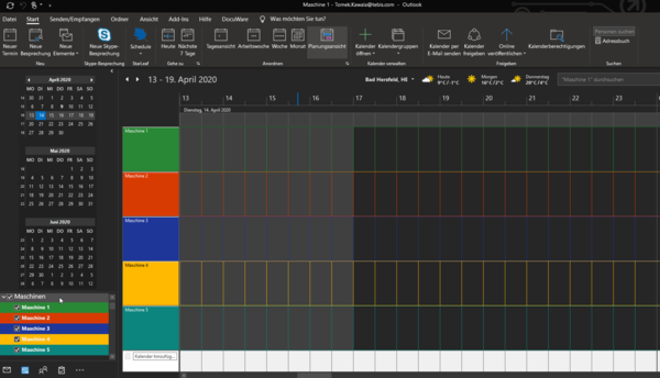 Manuell können wie gewohnt Termine in Outlook für die jeweilige Maschine erstellt werden.