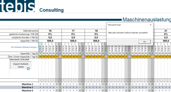 Das Tool „Maschinenfeinplanung mit Microsoft Outlook und Excel“ dient dazu, einen Einstieg in die digitale Planung zu ermöglichen und ersetzt kein MES-System.