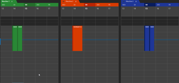 Sollen mehrere Maschinen verplant werden, empfiehlt es sich eine oder mehrere Maschinengruppen zu erstellen. Dies dient zur besseren Übersicht. Die einzelnen Maschinenkalender können entsprechend per drag-and-drop verschoben werden.