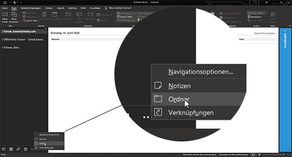 Sollten lokale Kalender mit Freigabe verwendet werden, muss die entsprechende E-Mail-Adresse des Kontos hinterlegt sein.