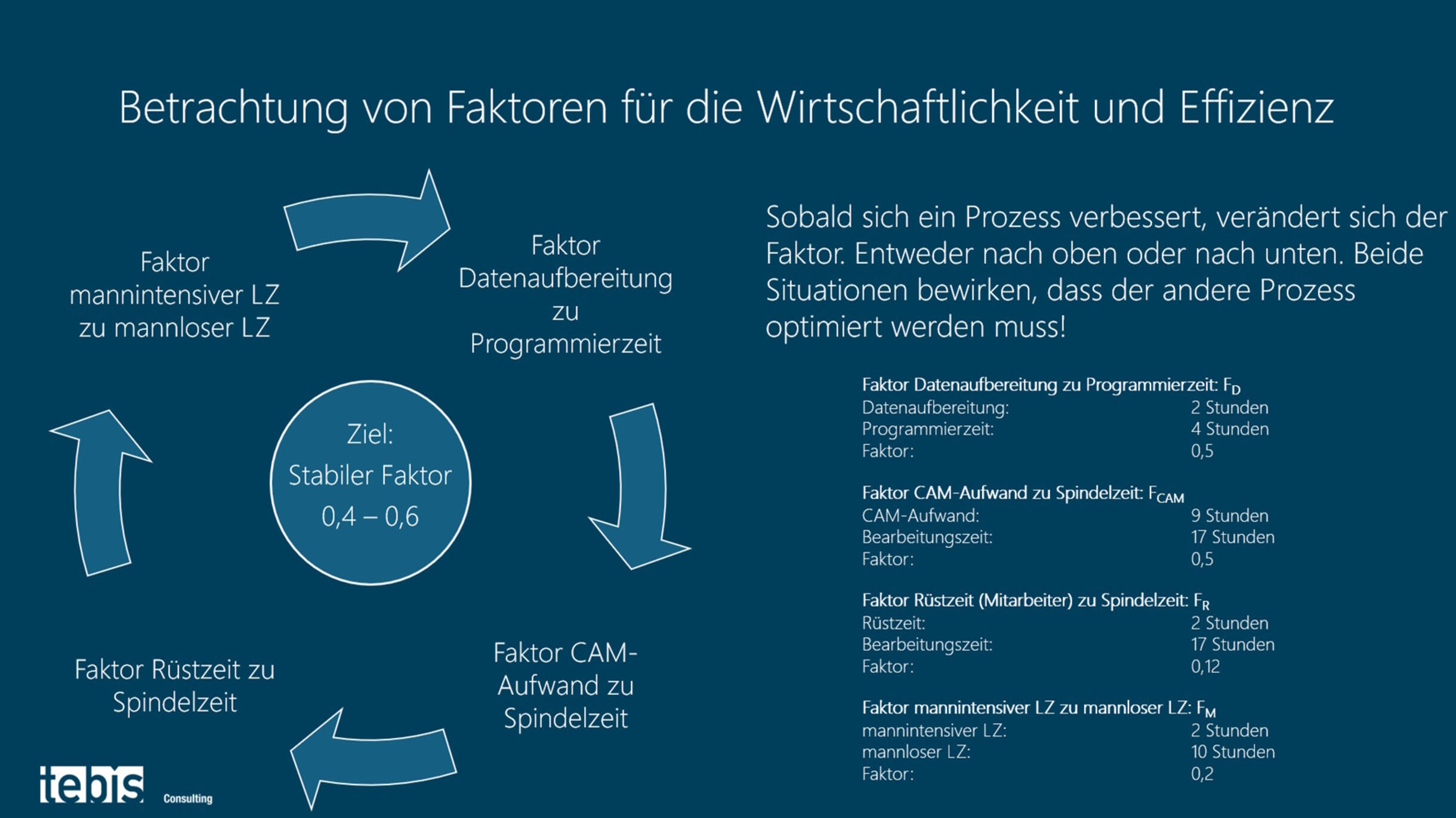 Klassische KPIs wie „Programmierstunden pro Auftrag“ oder „Maschinenlaufzeit pro Formplatte“ sind stark schwankend und abhängig von Auslastung, Bauteilmix oder Personalverfügbarkeit. Die Faktor-betrachtung hingegen normalisiert die Werte und setzt sie in ein sinnvolles Verhältnis: