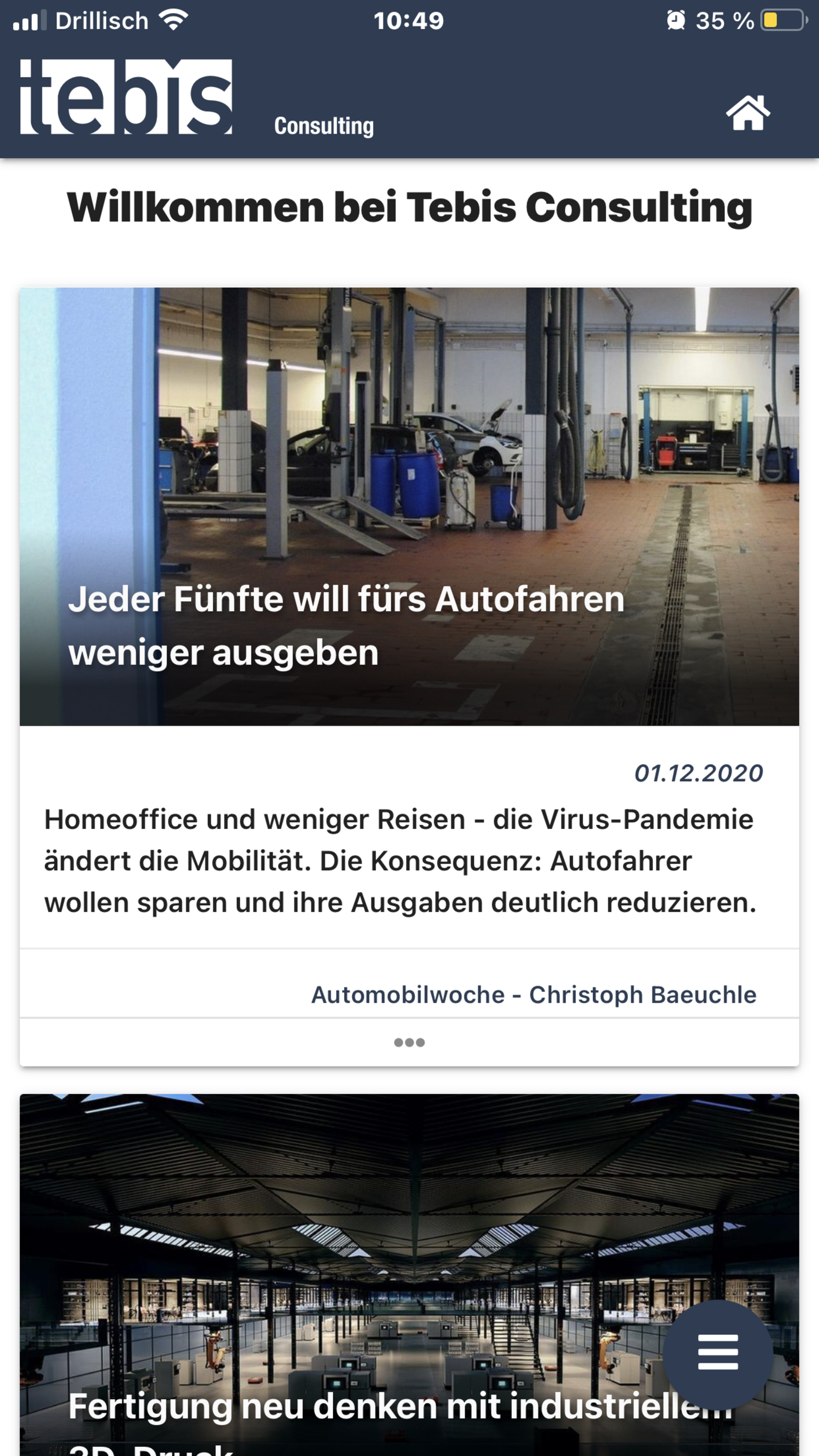 Göppingen,9. Dezember 2020 – Tebis Consulting, die fertigungsnahe Unternehmensberatung und eigenständige Geschäftseinheit der Tebis AG, launcht ihre App „Tebis Consulting“. Das neue Mehrwert-Angebot beinhaltet direkten Zugang zu dem speziellen Know-how von Tebis Consulting, bietet unterschiedliche Online-Tools und informiert über aktuelle Trends aus der Branche. Über das sogenannte Message-Board „Frag die Branche“ können die Nutzer zudem mit dem Branchennetzwerk in Kontakt treten. Die App ist kostenlos, sie kann unkompliziert von jedem Smartphone aus genutzt werden und richtet sich an Entscheider und Anwender im Werkzeug-, Modell-, Formen- und Maschinenbau.