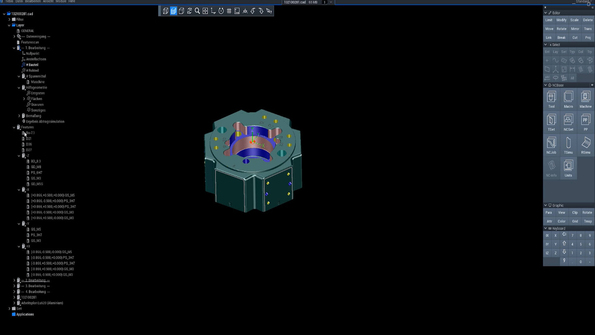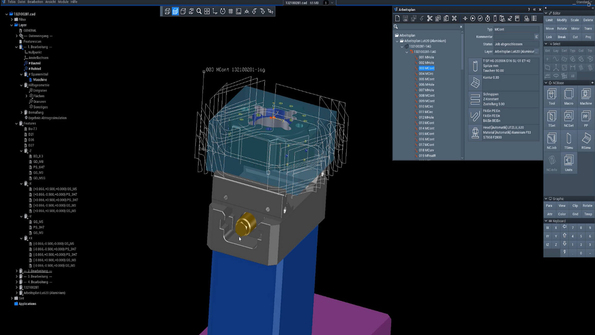 All das ist parametrisch in der Datenbank hinterlegt. Neben den Werkzeugen sind auch unsere Maschinen und Spannmittel als digitale Zwillinge vorhanden.