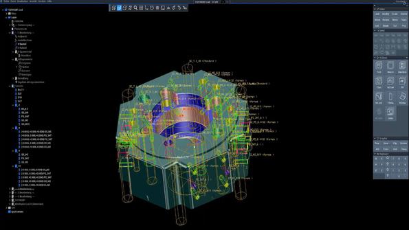 Die Farbcodierung in der CAM-Programmierung dient der Automatisierung der Bearbeitung bestimmter Geometrien. Mittels der Farben kann bereits der Konstrukteur Features wie Bohrungen oder Taschen standardisierte Bearbeitungsstrategien zuweisen. In Tebis sind diese Farben mit spezifischen Bearbeitungsstrategien wie etwa 2,5D-Fräsen oder Bohren verknüpft. Die Software erkennt die farbkodierten Elemente im Modell, wendet die hinterlegte Strategie automatisch an, verknüpft sie mit den passenden Werkzeugen und Parametern und generiert daraus die NC-Programmteile für die jeweiligen Elemente. Der Programmierer wird so spürbar von Wiederhol- und Routinetätigkeiten entlastet und gewinnt Zeit für die Optimierung seiner Programme. Und auch das Risiko von Fehlern wird deutlich reduziert.