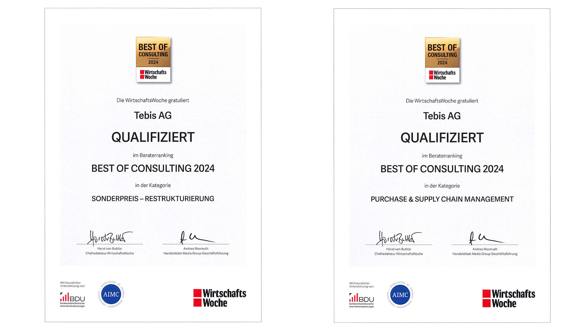 Unsere Berater überzeugten in den Kategorien Restrukturierung sowie Purchase und Supply Chain Management.