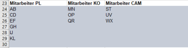 Lines 23 to 30 are for the names of the respective employees. In the example, these are project managers, designers and programmers. These can be adapted individually.