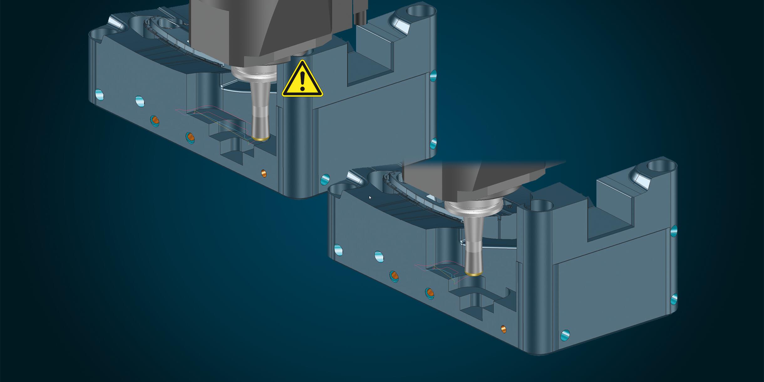 In the event of potential collisions with the machine head, milling areas are now automatically reduced or excluded from the machining operation in the NC calculation.
