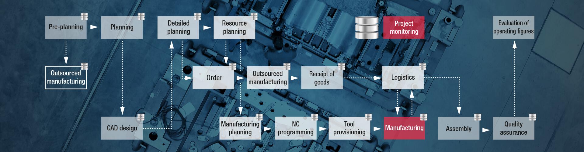 In die and mold manufacturing, the dies offered for the series manufacturing of sheet-metal and plastic parts are typically manufactured under extreme time pressure. Especially with increasing part complexity, bottlenecks, and large order volumes, the effort required for manual planning can be enormous. To achieve high planning accuracy, manufacturing managers must receive systematic support for manufacturing planning to keep an eye on all interfaces and dependencies.