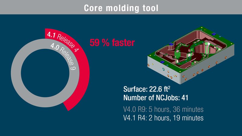 The result: Not only is Tebis 4.1 Release 4 just as fast as Tebis 4.0 Release 9 – it’s up to four times faster in certain areas.