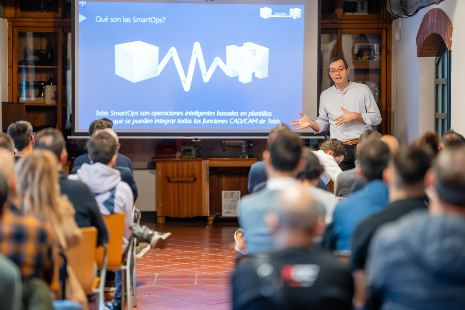 La interacción constante entre asistentes e ingenieros fue uno de los aspectos más destacados del evento. El diálogo abierto, el intercambio de experiencias y el análisis de situaciones reales de taller con el equipo técnico de Tebis convirtieron la jornada en un espacio de aprendizaje práctico, más allá de una presentación convencional.