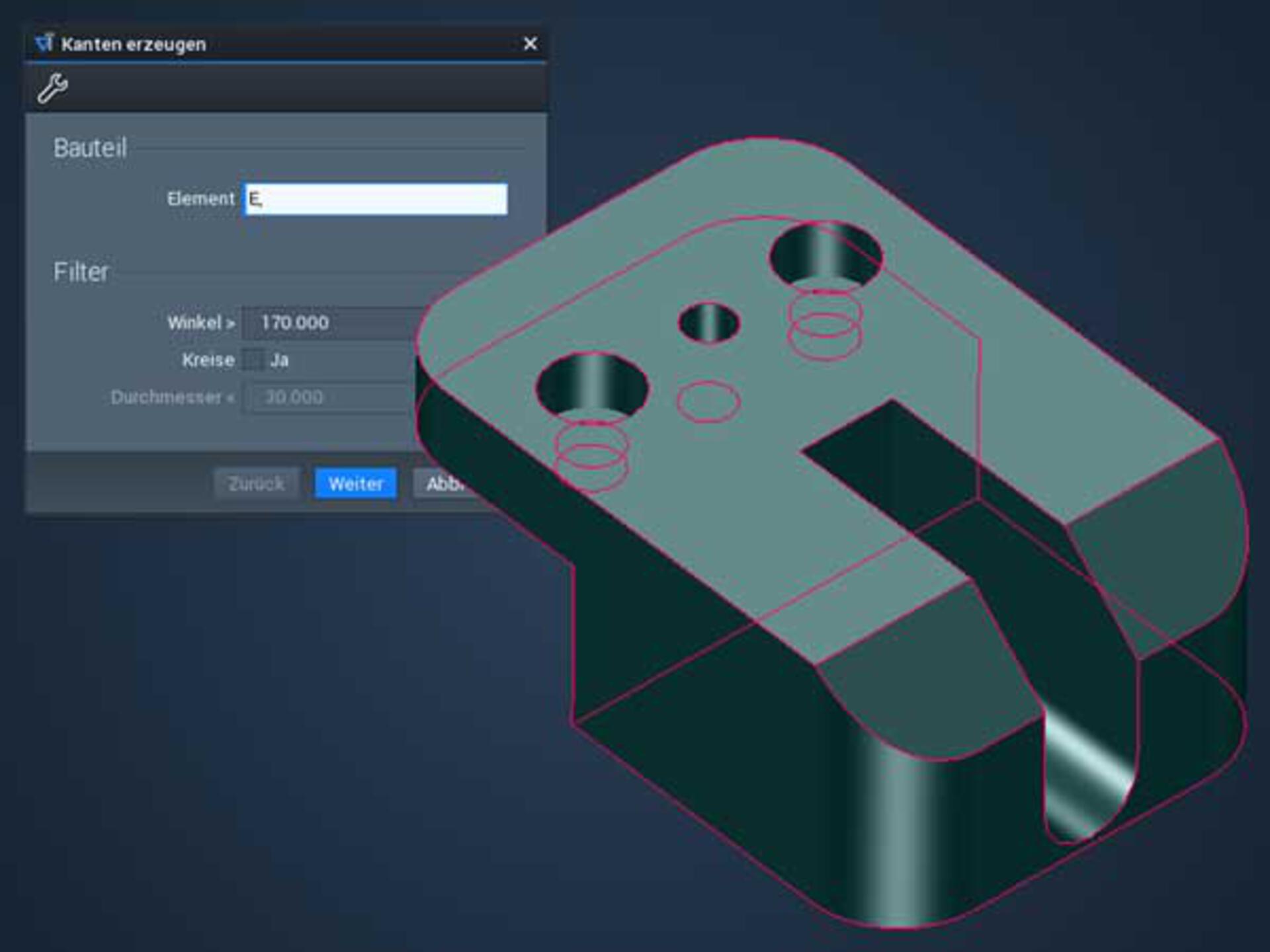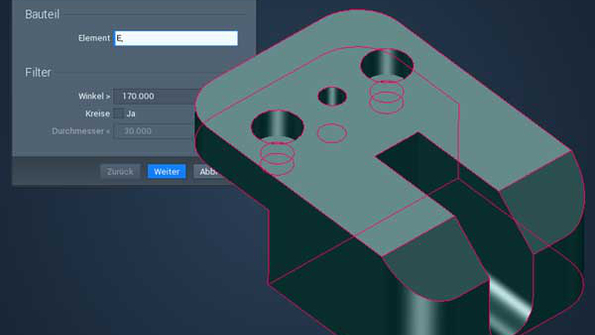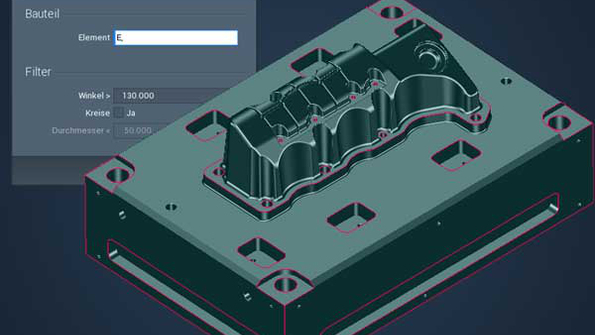 Avec cette nouvelle fonction, pas besoin de connaissances spécifiques en conception pour préparer la pièce. Il suffit à l’utilisateur de sélectionner la pièce pour que le système reconnaisse automatiquement les arêtes vives et les crée de manière structurée une fois l’opération terminée. Selon les besoins, les utilisateurs peuvent limiter l’identification au moyen de filtres. Ce qui leur permet par exemple d’exclure de l’usinage des trous chanfreinés qui ne seront ainsi ébavurés que pendant le processus de perçage.