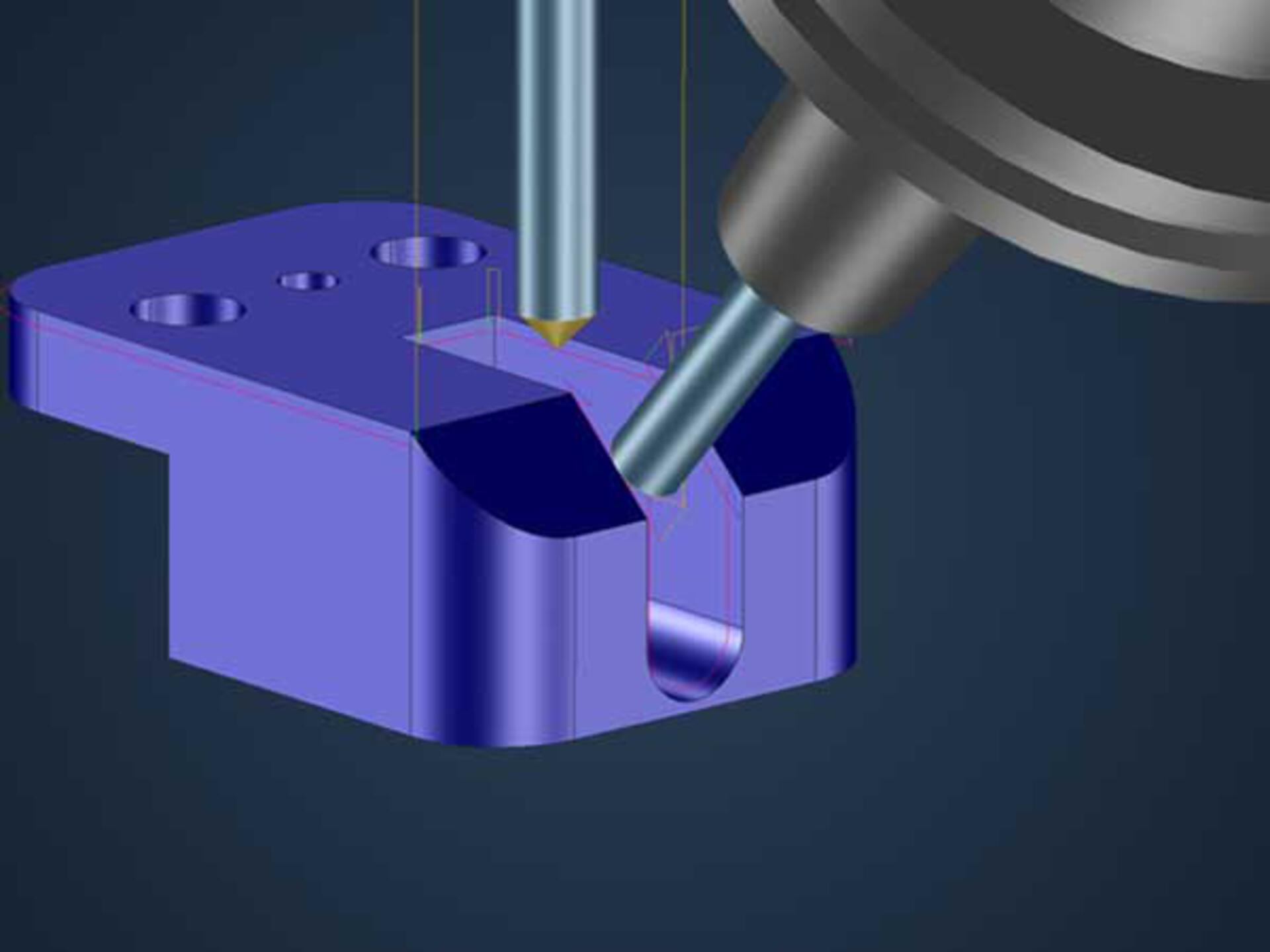 Avec cette nouvelle fonction de fraisage pour l’ébavurage, l’utilisateur n’a plus besoin de sélectionner les courbes unes à unes ni d’orienter l’outil de manière interactive. En effet, les données structurées, ainsi que la sélection automatique des éléments interviennent à ce stade. L’outil recherche lui-même l’orientation optimale. L’évitement 5 axes simultanés automatique est également intégré en cas d’utilisation de fraises boules.