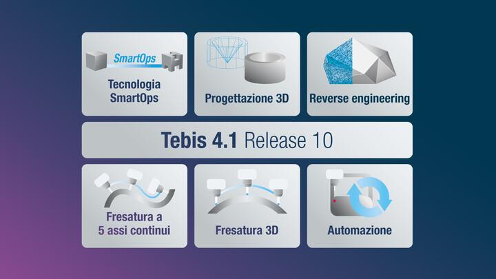 Il focus della nuova release è la rivoluzionaria tecnologia Tebis SmartOps per l'automazione end-to-end dei processi CAD/CAM. Gli utenti possono padroneggiare molte attività essenziali nella pianificazione di progettazione e produzione in modo significativamente più rapido e semplice, oltre a poterle riprodurre in qualsiasi momento.