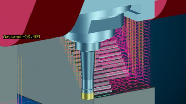 Nelle lavorazioni combinate di tornitura e fresatura, oltre ai componenti cilindrici è ora possibile lavorare con grande efficienza anche i componenti conici, come i trasportatori a coclea. Dapprima l’utensile esegue la sgrossatura con un ridotto incremento laterale e un’elevata profondità di avanzamento fino alla massima profondità possibile; successivamente lavora le restanti aree di materiale dal basso verso l'alto con una profondità di taglio inferiore fino alla misura esatta del sovrametallo – tutto in un unico processo. Questa procedura riduce l'usura dell'utensile e assicura un elevato volume di asportazione sulla macchina. L’operazione di finitura conclusiva può essere programmata facilmente con un’apposita funzione: l’utente deve semplicemente cambiare la strategia – tutto il resto viene gestito dal sistema.