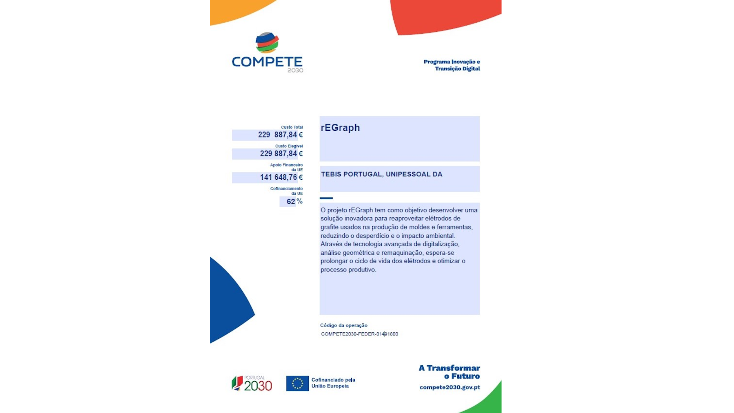 O projeto rEGraph tem como objetivo desenvolver uma solução inovadora para reaproveitar elétrodos de grafite usados na produção de moldes e ferramentas, reduzindo o desperdício e o impacto ambiental.