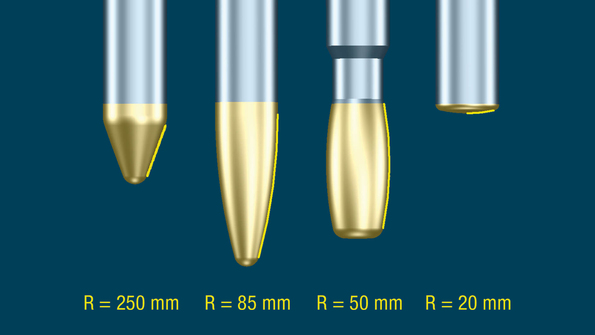 A escolha da fresa de segmento circular mais adequada para o acabamento depende totalmente da operação em causa. A grande vantagem do Tebis: é possível importar a maior parte das ferramentas diretamente do fabricante com os contornos corretos. E ao usar os parâmetros de curvas, todas as geometrias podem ser criadas rápida e facilmente, com representação de 1:1 na biblioteca de ferramentas. Há, portanto, flexibilidade total.